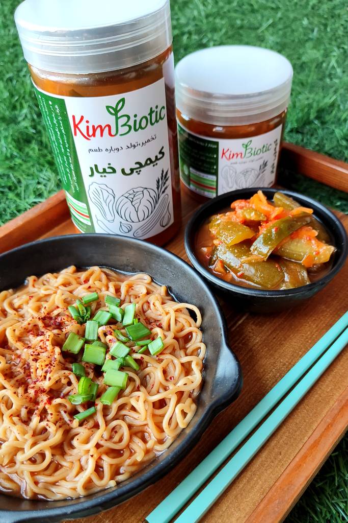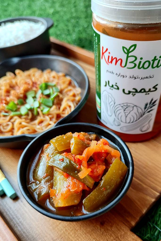 🥒کیمچی خیار یک محصول تخمیری و بدون سرکه است که از ترکیب خیار، هویج، پیازچه، فلفل گچوگارو، سیب، سیر ،زنجبیل و نمک بدون ید، بدون هرگونه نگهدارنده و مواد افزودنی در کارگاه مواد غذایی کیم بیوتیک(مستقر در مرکز رشد و زیر نظر مهندس صنایع غذایی) آماده شده است.